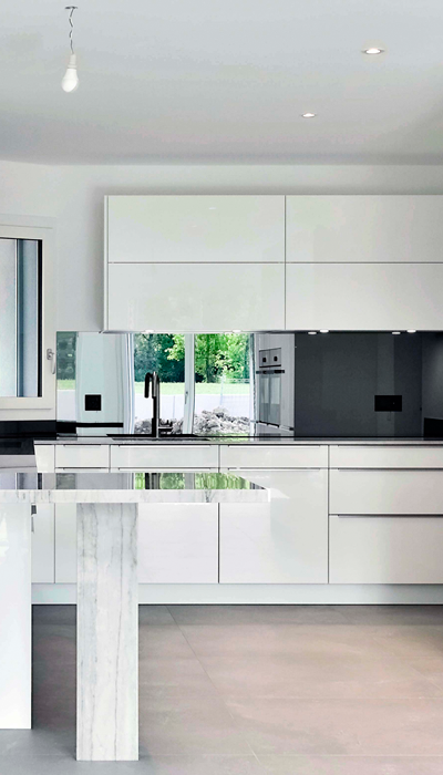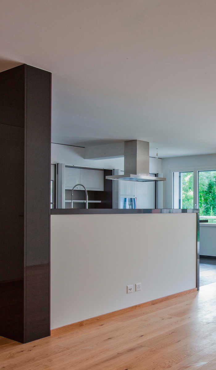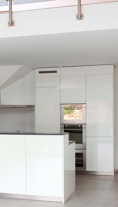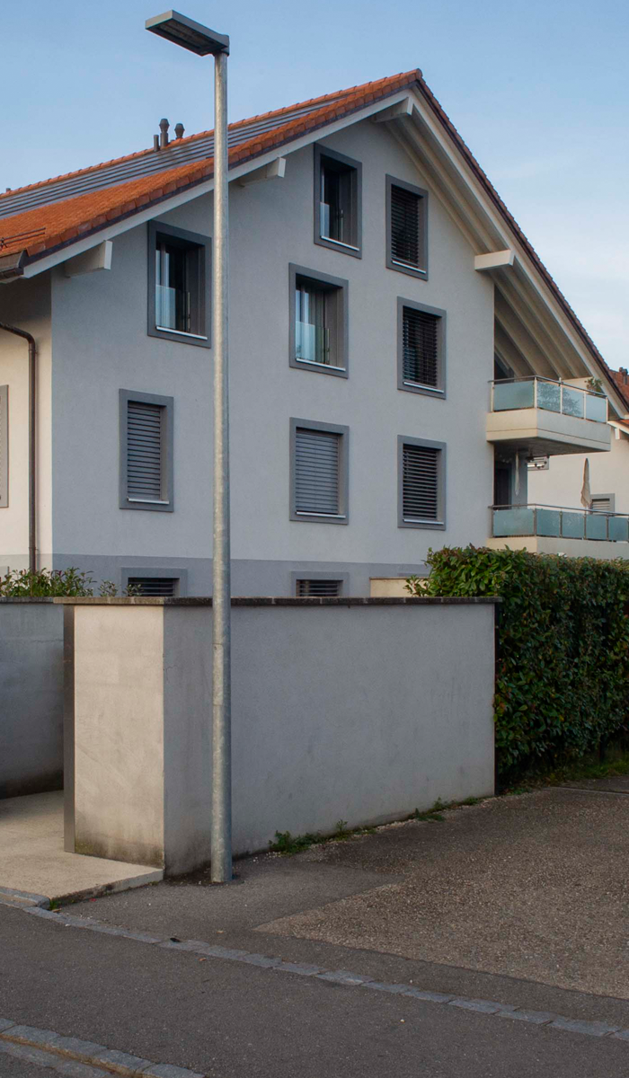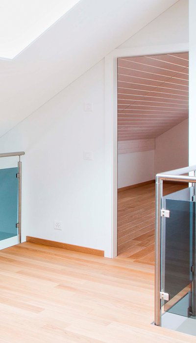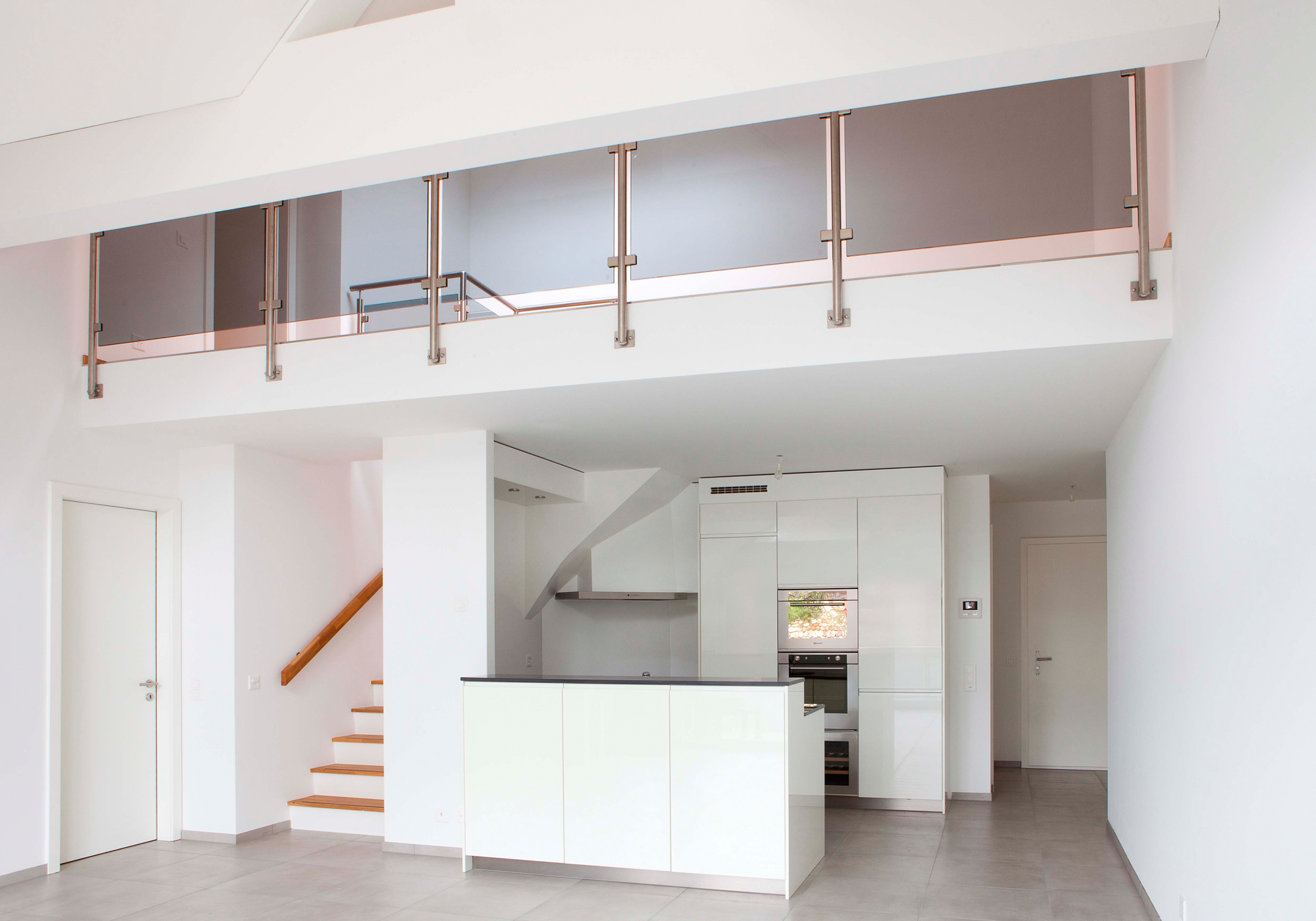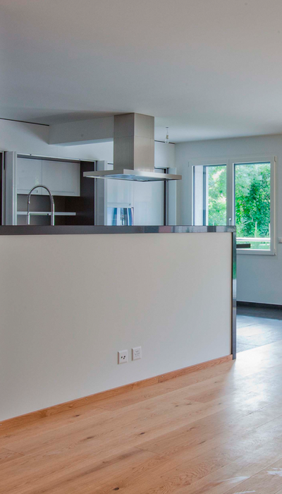 Afin de garantir une excellente insonorisation, 16 centimètres de laine de roche ont été placés entre les murs béton contiguës des villas.