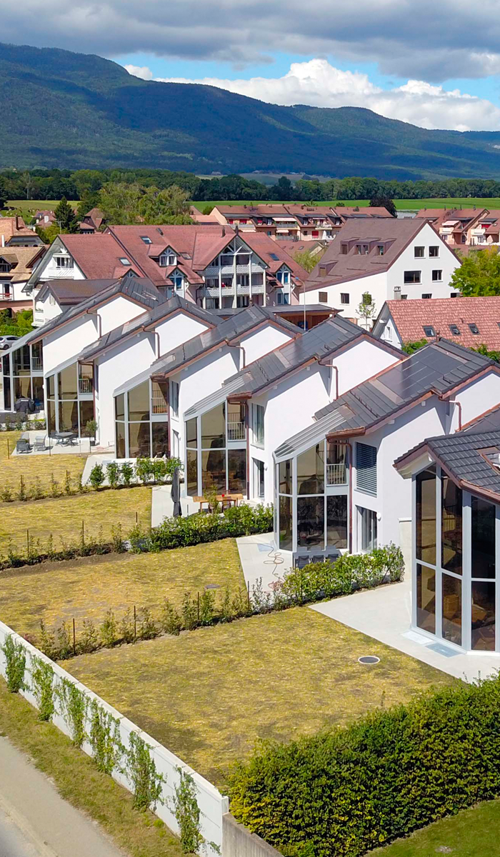 Les villas ont été bâties individuellement et ne partagent que les radiers, elles sont construites sans murs ou installations techniques communes.
